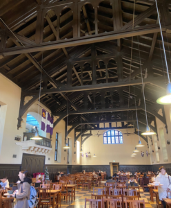 講義終了後は、学食に案内してもらい、皆さんで食事をしながら情報交換しました。優しい学生たちに囲まれて楽しい時間でした。立教の学食、ハリーポッターみたいでしょ。一般の方も入れるらしいです。